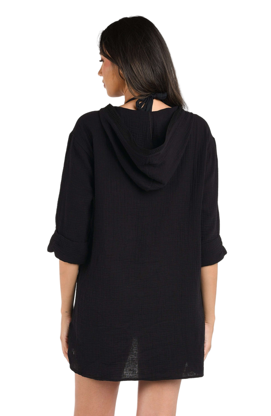 La Blanca Seaside Covers Hoodie Coverup - Black