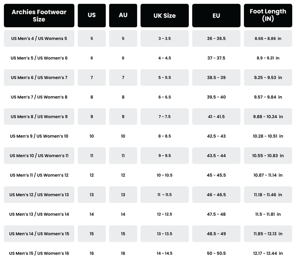 When ordering a pair of Archies Flip Flops or Slides, we recommend you choose your normal running shoe size.