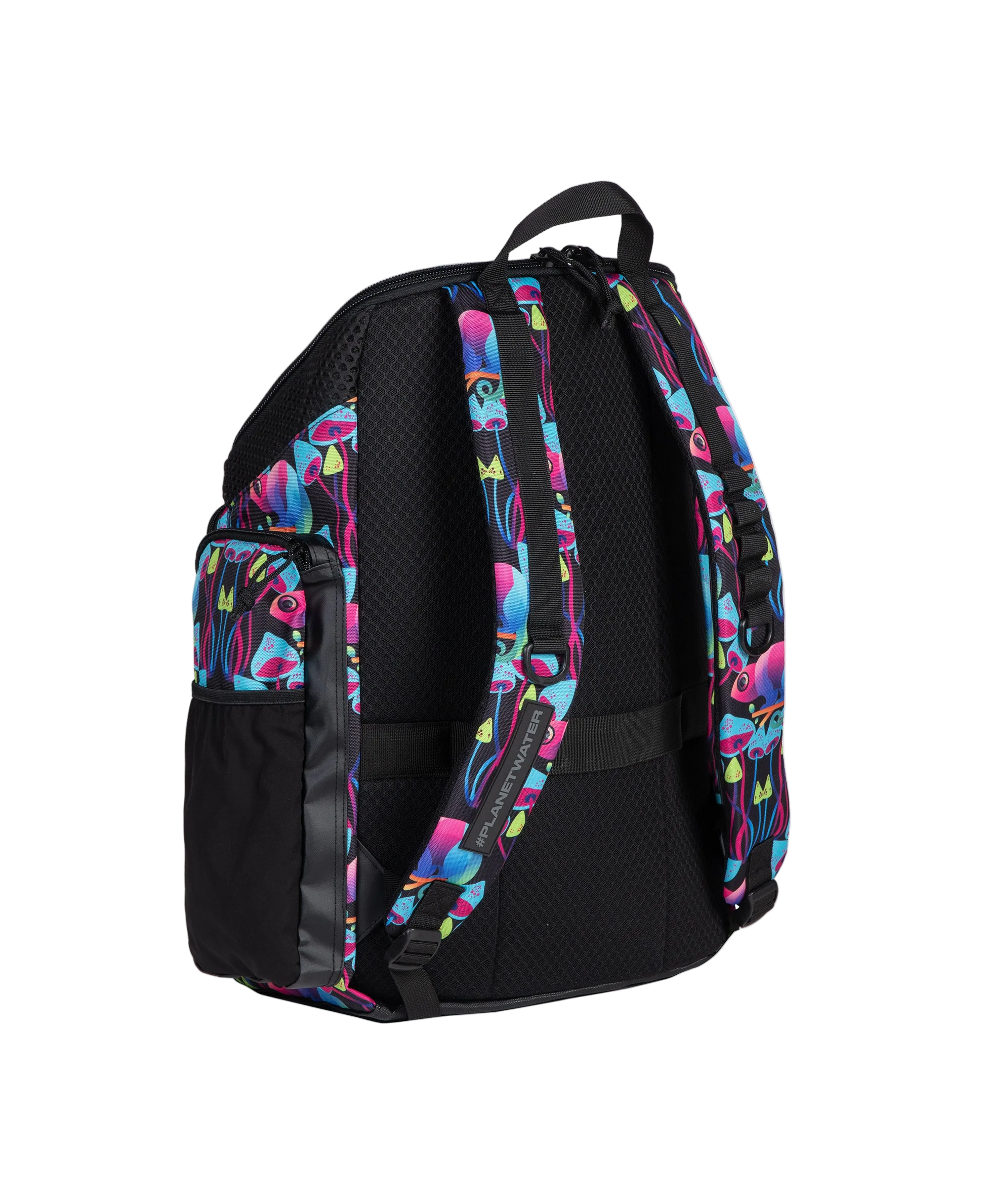 Organize all the stuff you need for training. The large and ultra stylish arena One Go Backpack Allover 45L, featuring a top-loading design, allows for effortless packing and access to your belongings. The roomy main compartment and four external zipped front pockets provide multiple storage options. Breathable and watertight inserts keep wet and dry items separate. It includes a smart laptop sleeve and two external bottle pockets. Aquabreathe, arena's new wet management system, combines breathable and water-repellent fabrics to create an advanced ventilation system that keeps water out and your gear dry. The breathable back panel ensures sweat-free transport. A practical belt allows for easy attachment to a suitcase, while the included carabiner makes hanging the backpack convenient. The water-repellent bottom and main fabric offer reliable protection from moisture and dirt.