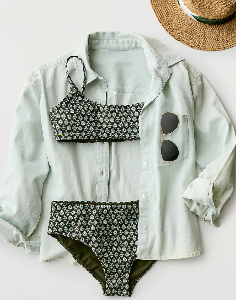 Carve Designs Escondido Compression Reversible Bikini Top - Dark Fir Batik