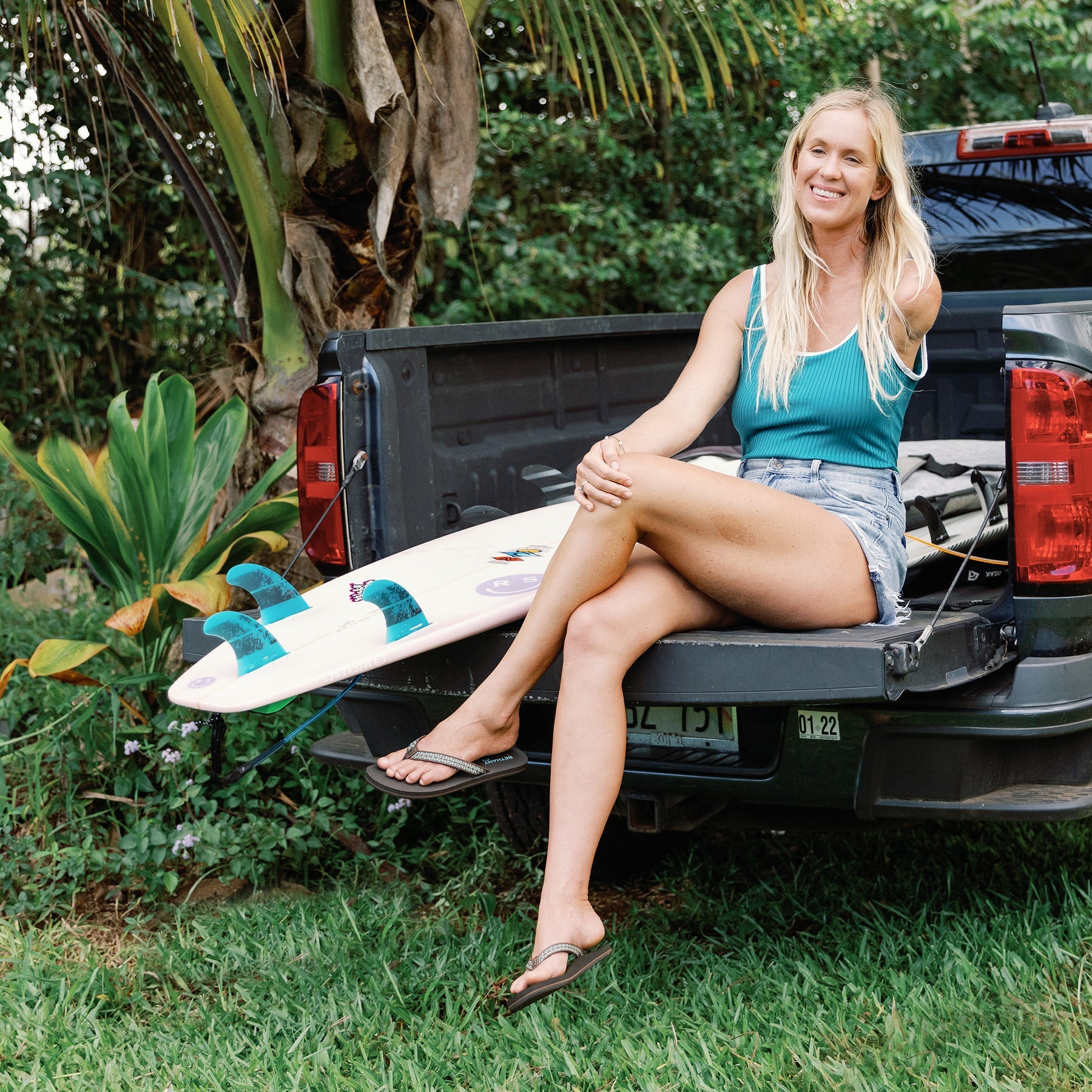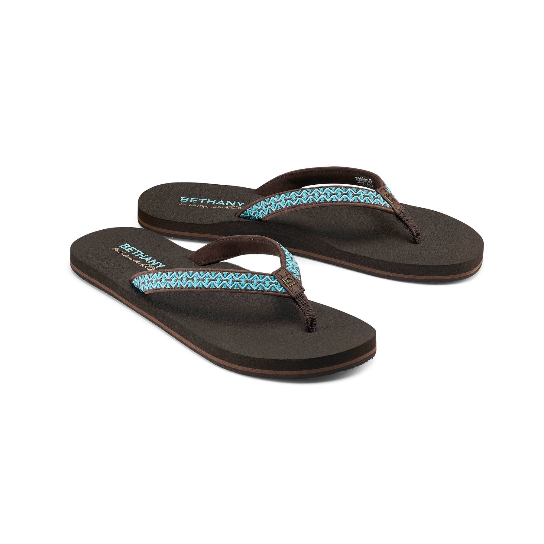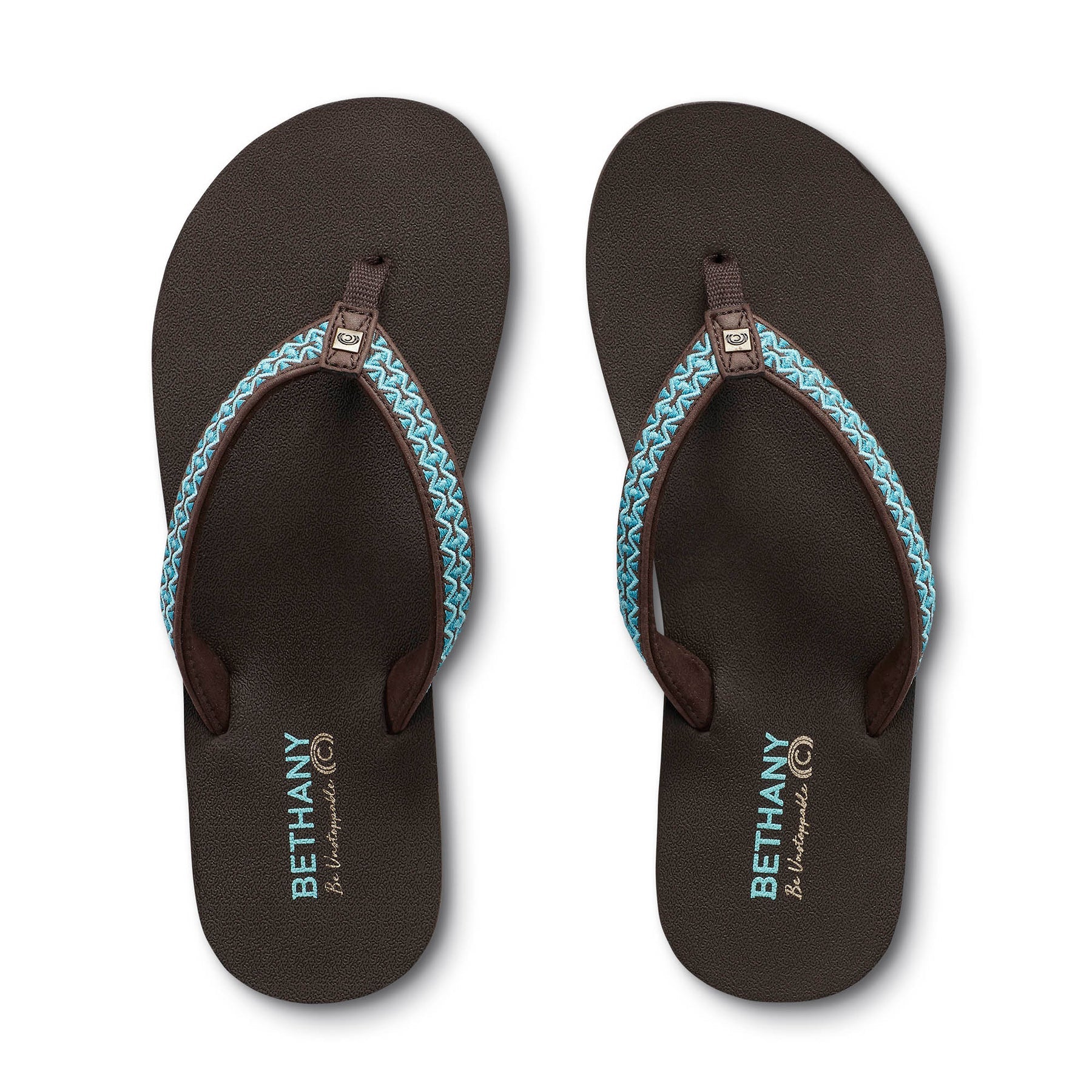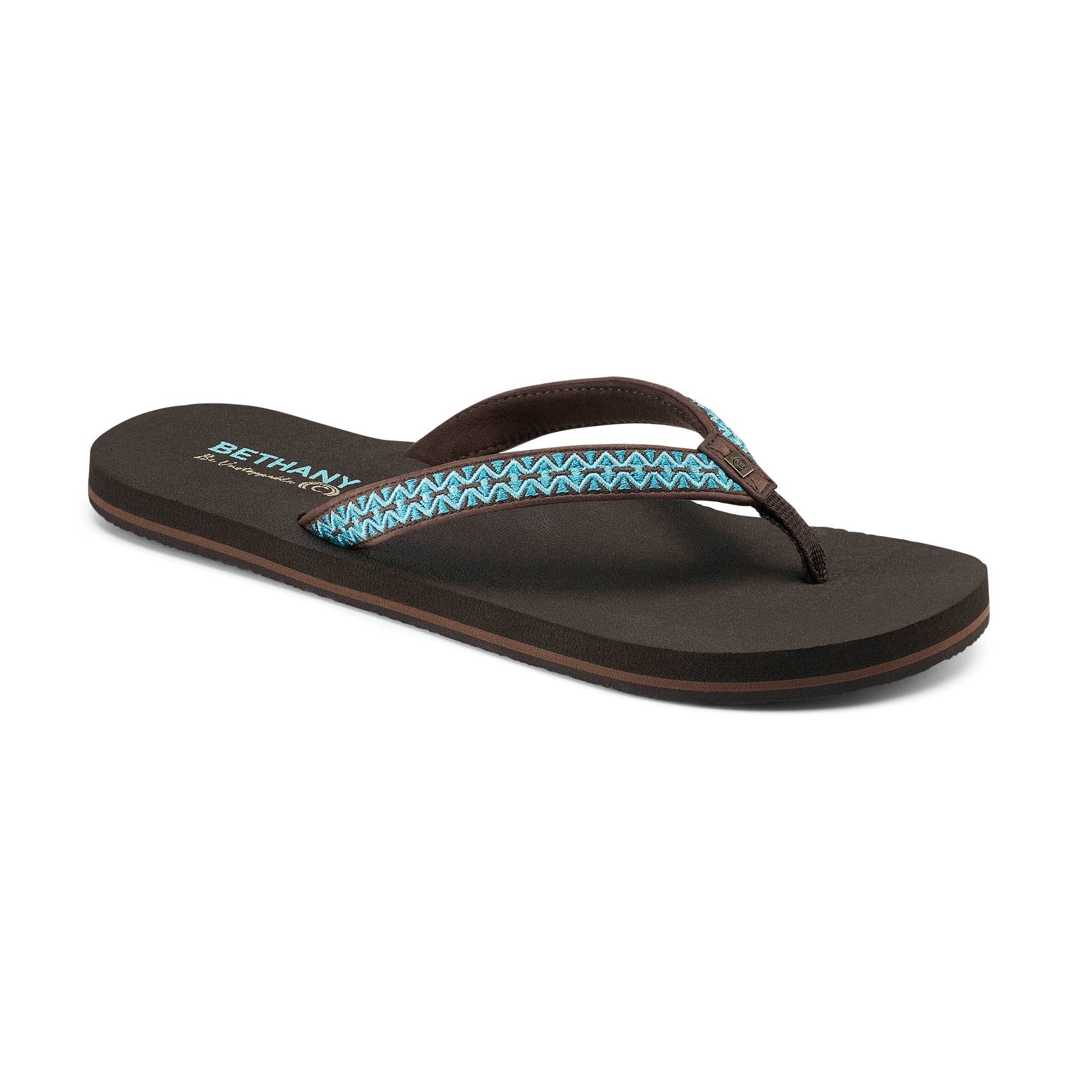 The Bethany Meilani™ — "Heavenly Flower" in Hawaiian — features soft synthetic straps with a custom embroidered motif. As part of Bethany Hamilton's signature collection, a portion of proceeds supports the Beautifully Flawed Foundation.