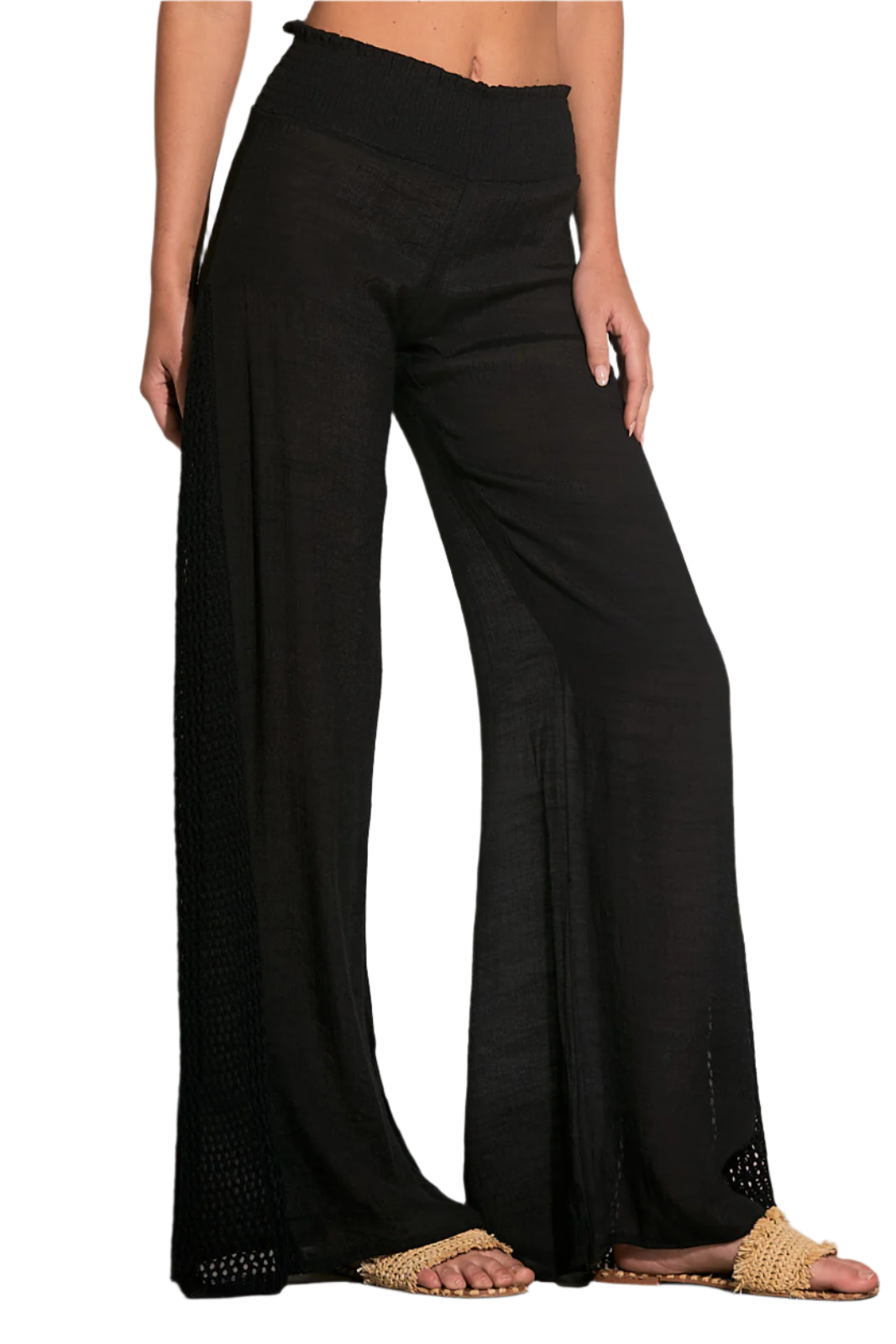 Embrace your wanderlust in the Elan Crochet Panel Wide Leg Pants. Inspired by global fashion trends, these pants are perfect for the adventurous traveler. Made with high quality fabrics, they offer both comfort and style. Ready to hit the road? These pants are too!