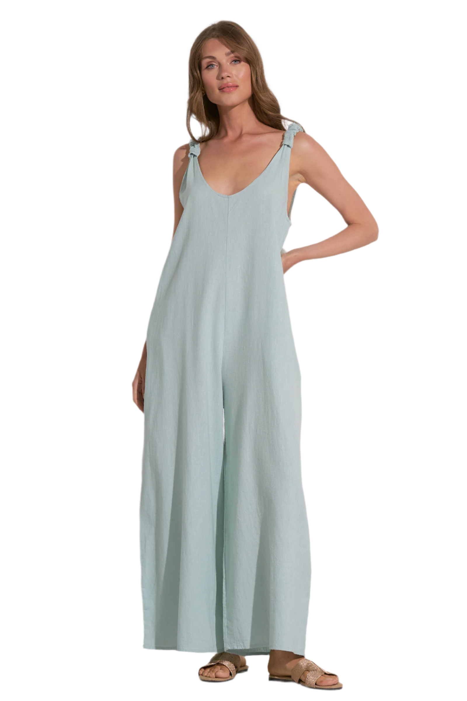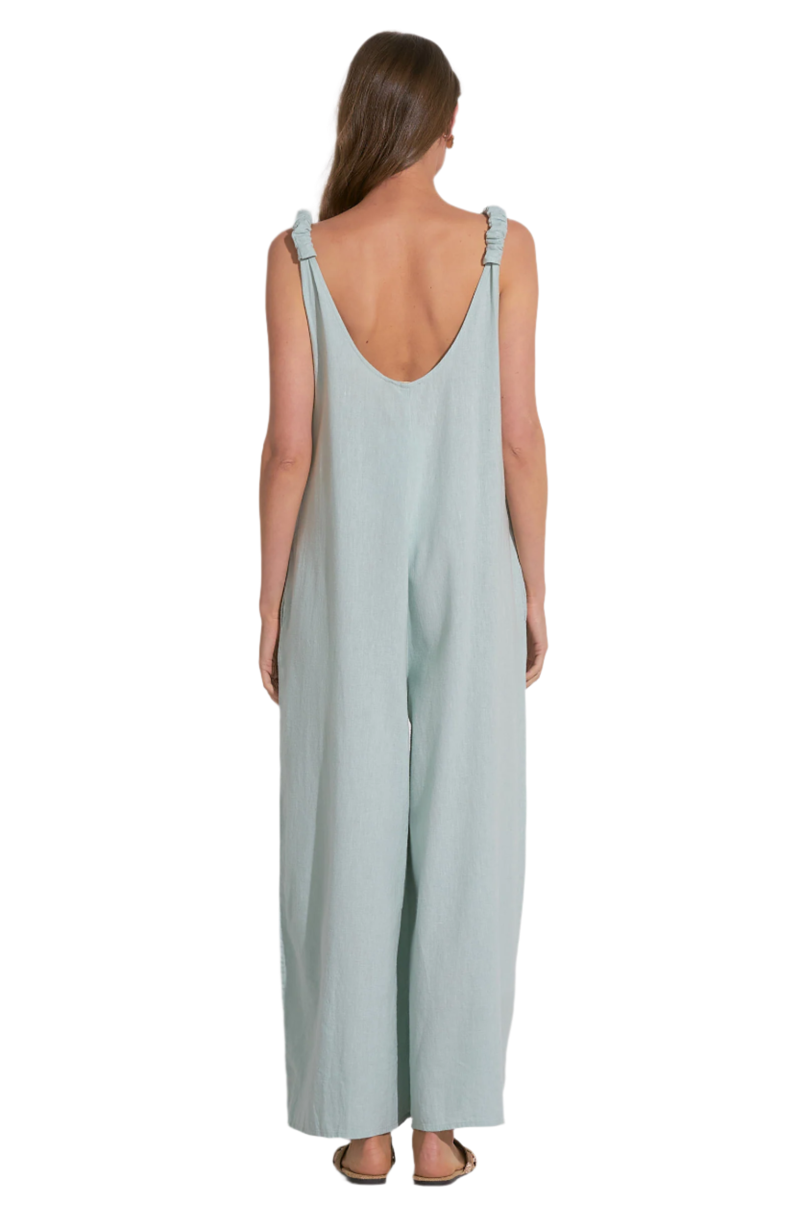Elan V Neck Linen Tank Jumpsuit Romper - Light Teal - FINAL SALE