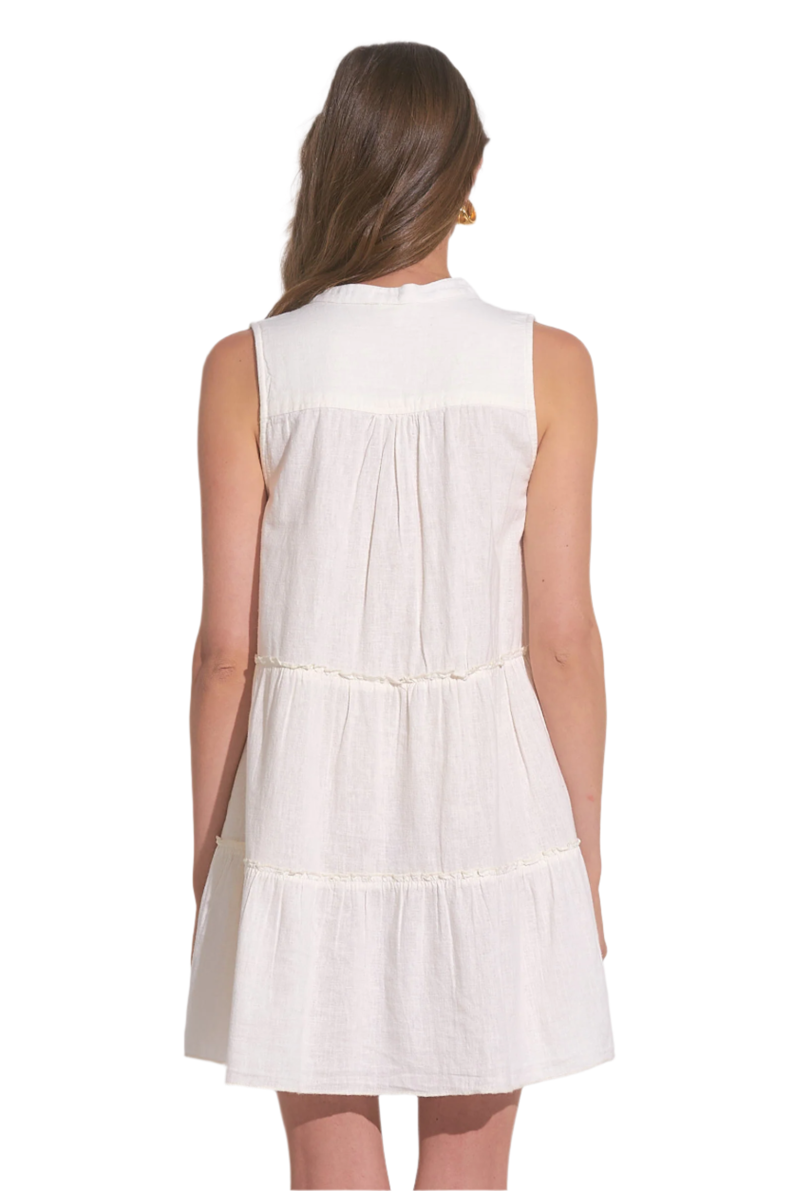 Elan Sleeveless Linen A-Line Short Dress - White