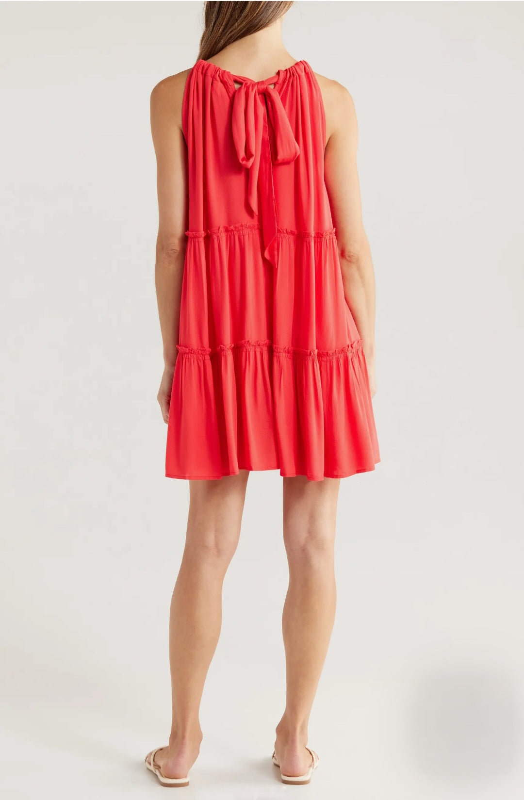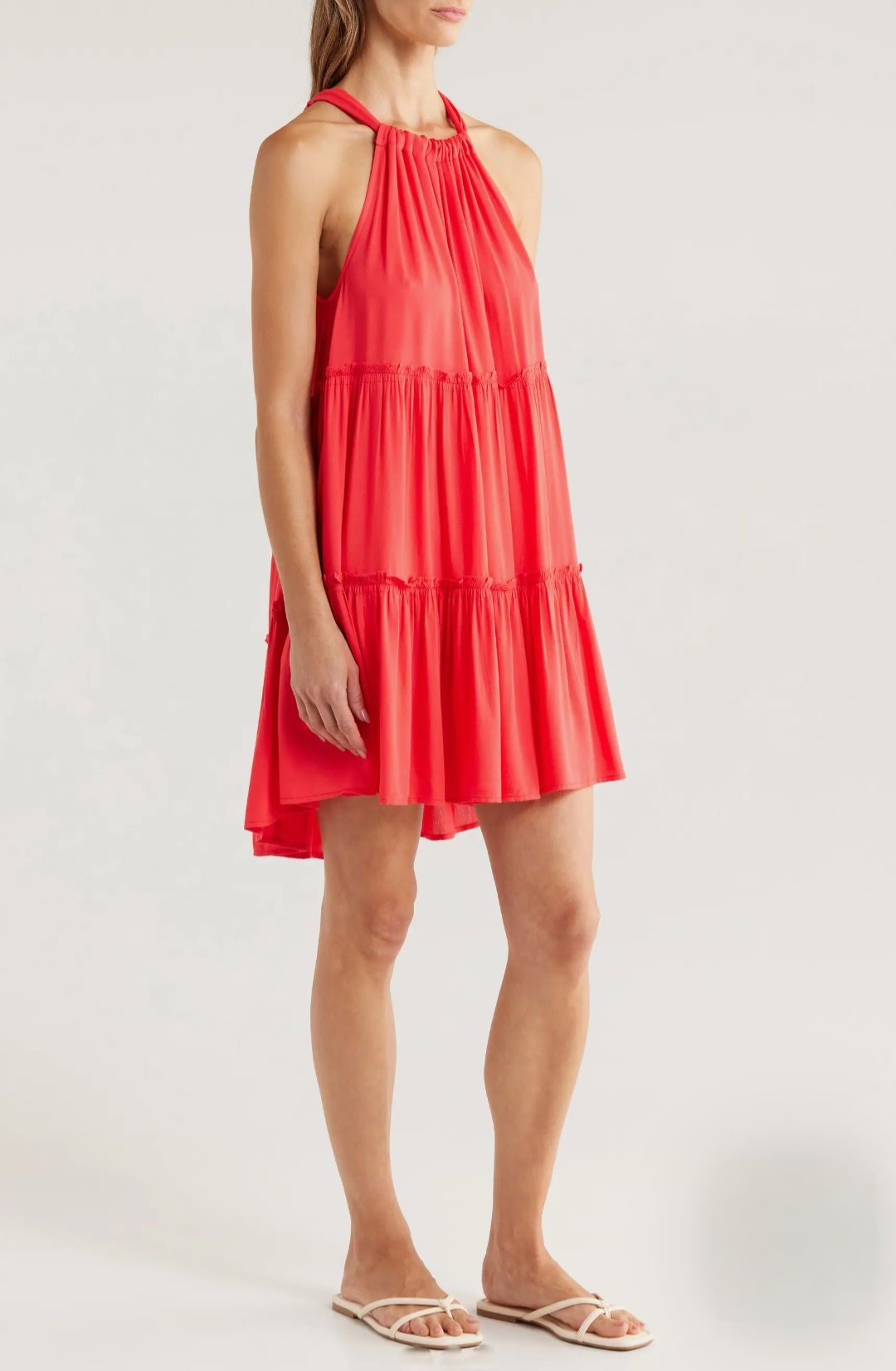 Elan Spaghetti Strap Mini Dress Cover Up - Red Coral