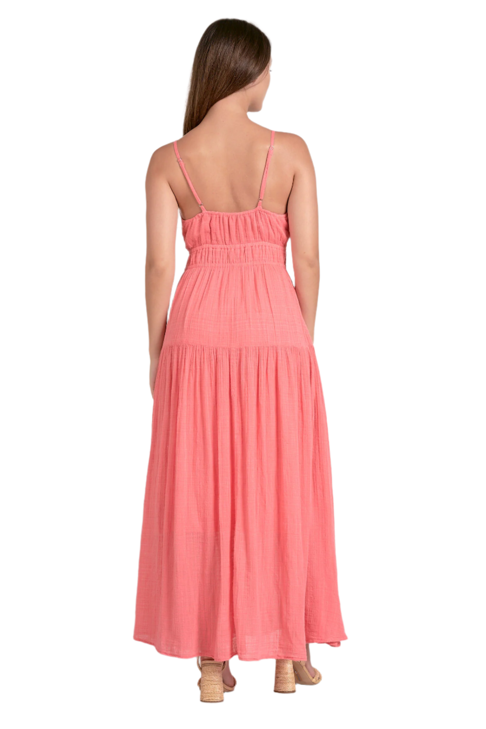 Elan Tiered Tie Front Maxi Dress - Coral