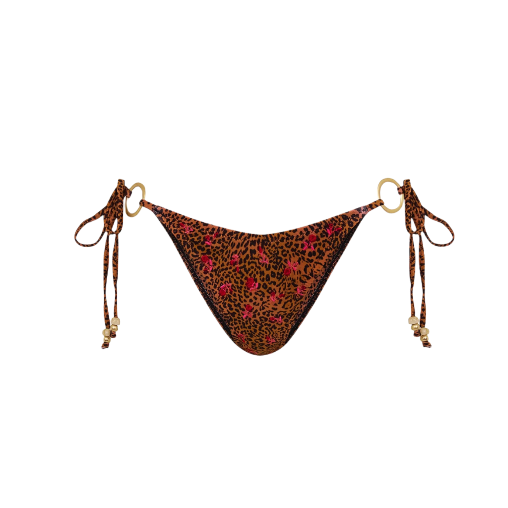 Make a statement with our new Ring Cheeky Tie Bikini Bottom, designed for a flirty and flattering look. Featuring O-ring side details and adjustable tie sides, these bottoms offer a dipped waist and high-cut that accentuate your legs.