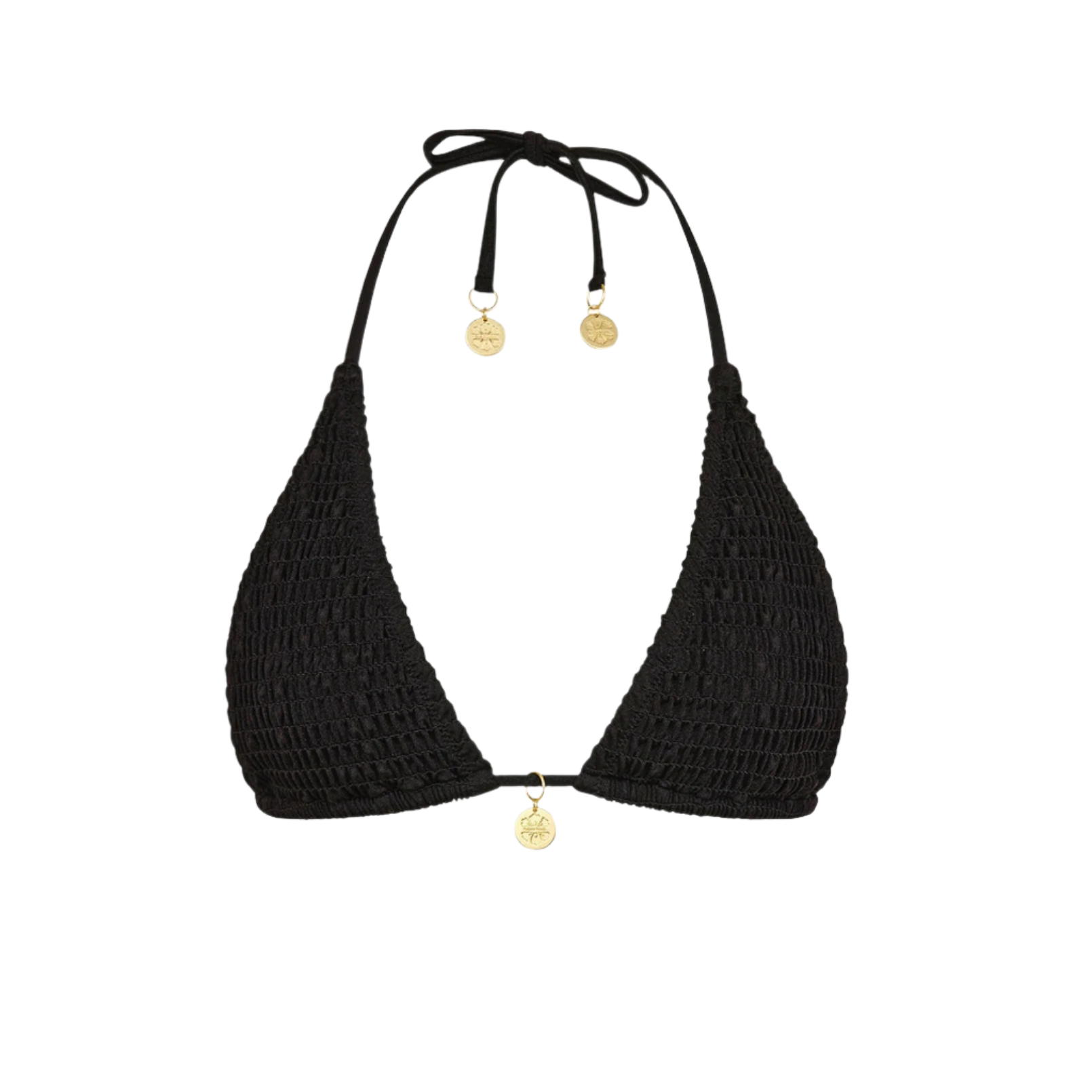 Kulani Kinis Shirred Triangle Bikini Top - Twilight Black