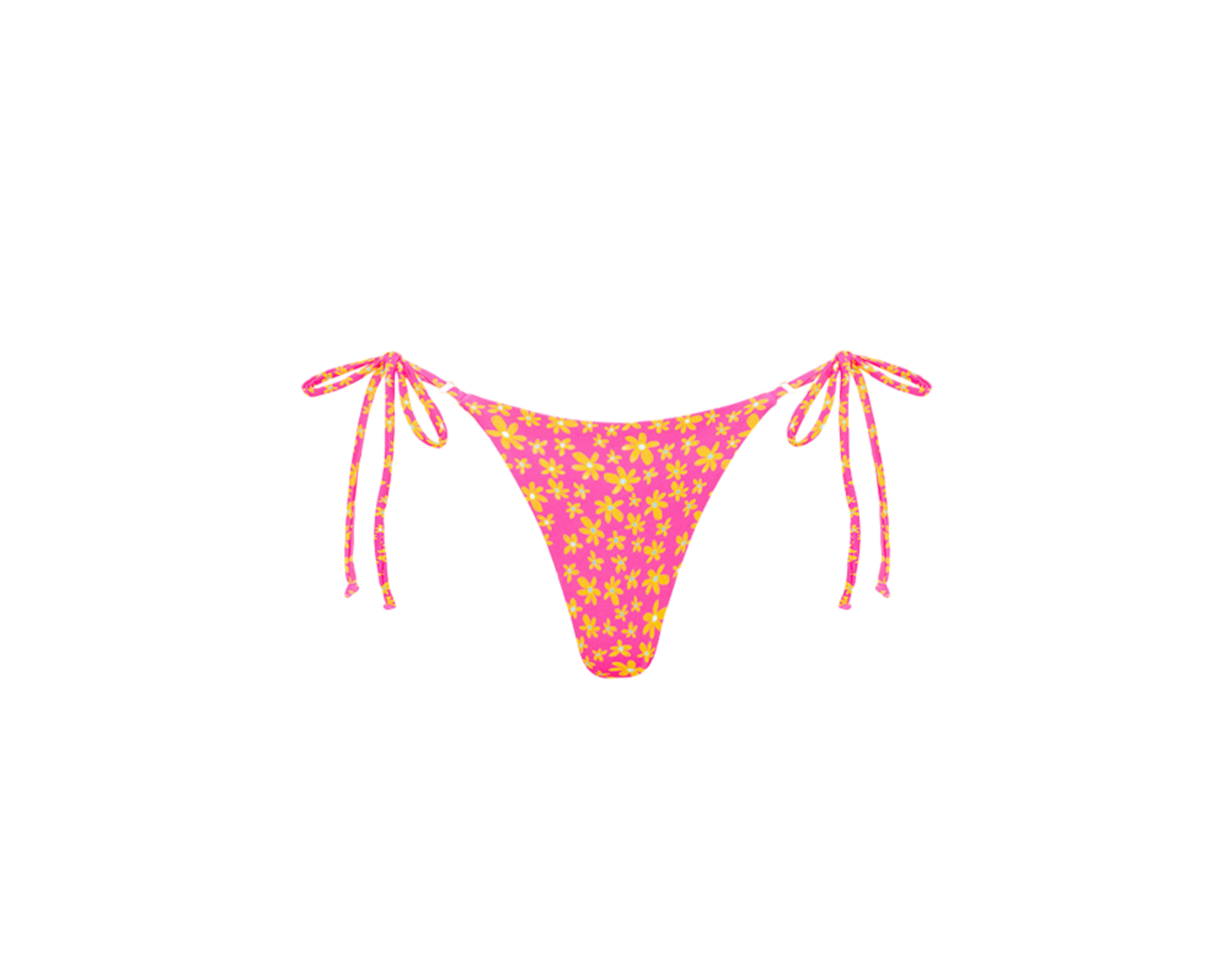 This is a thong cut bottom that is perfect for laying out in the sun and keeping tan lines low! Girls who buy this bottom aren't worried about bum coverage and enjoy a minimal front look. The majority of our customers prefer to size up one in this style for optimal comfort!