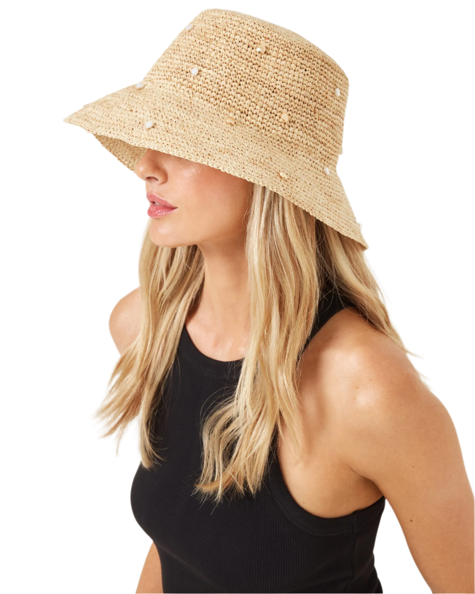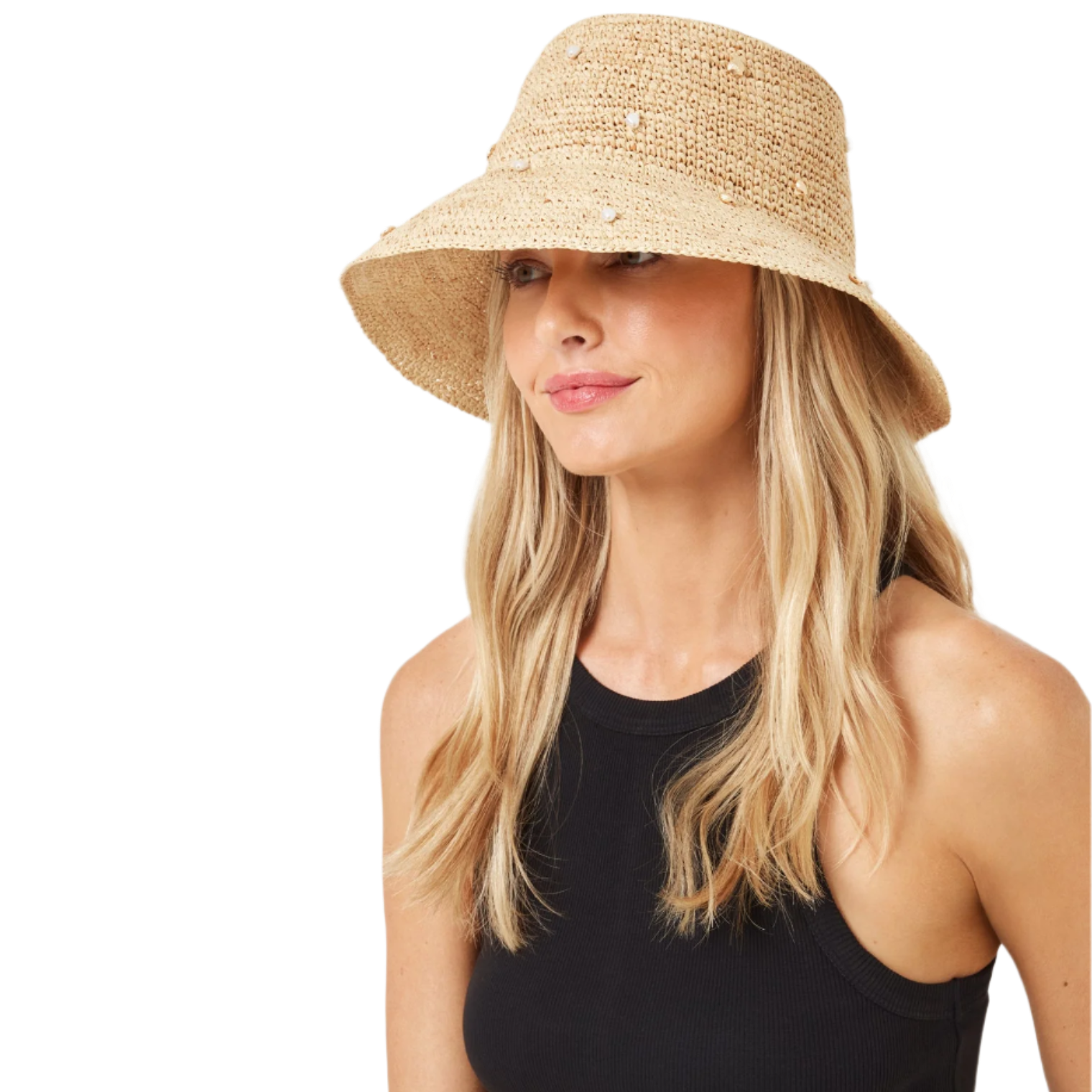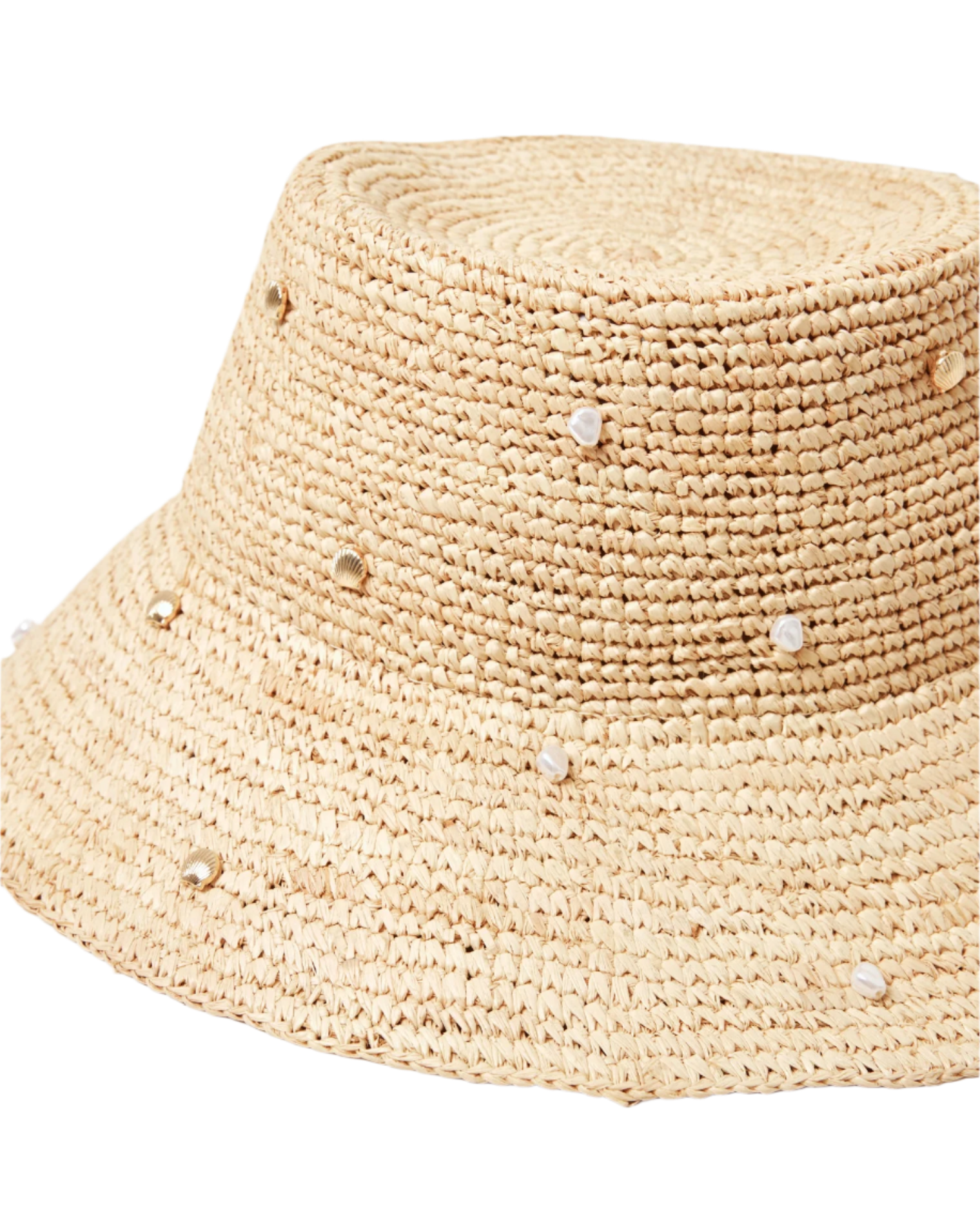 Bucket hats are back and better than ever. The Carmel Island is our latest take on the trend featuring gorgeous pearl and shell details all over.