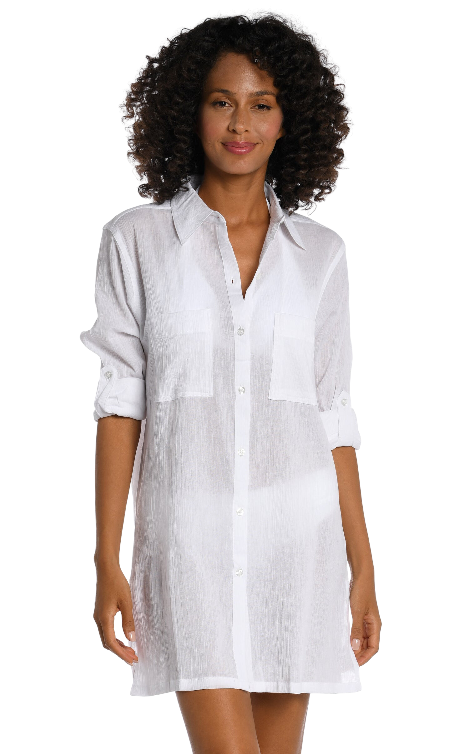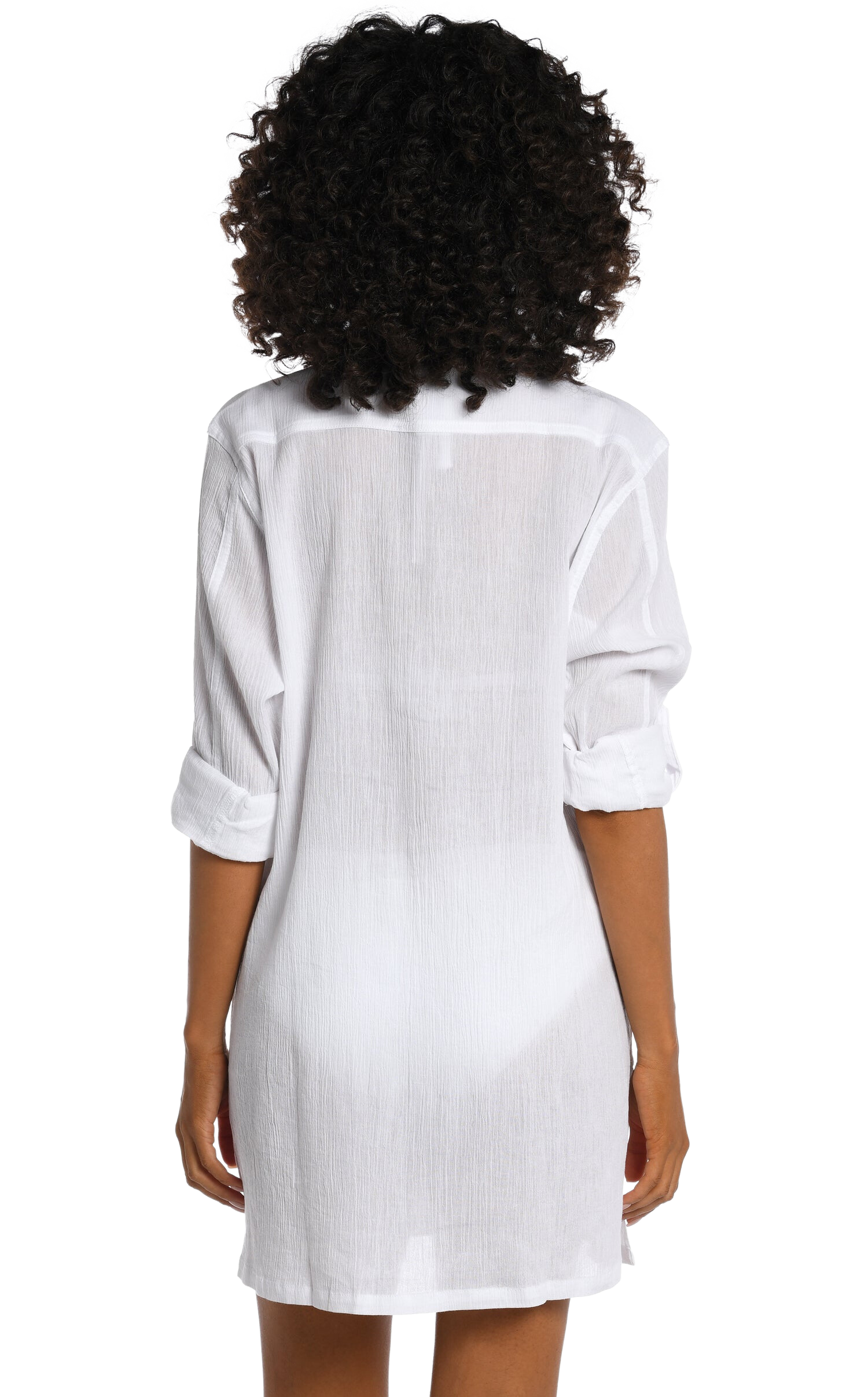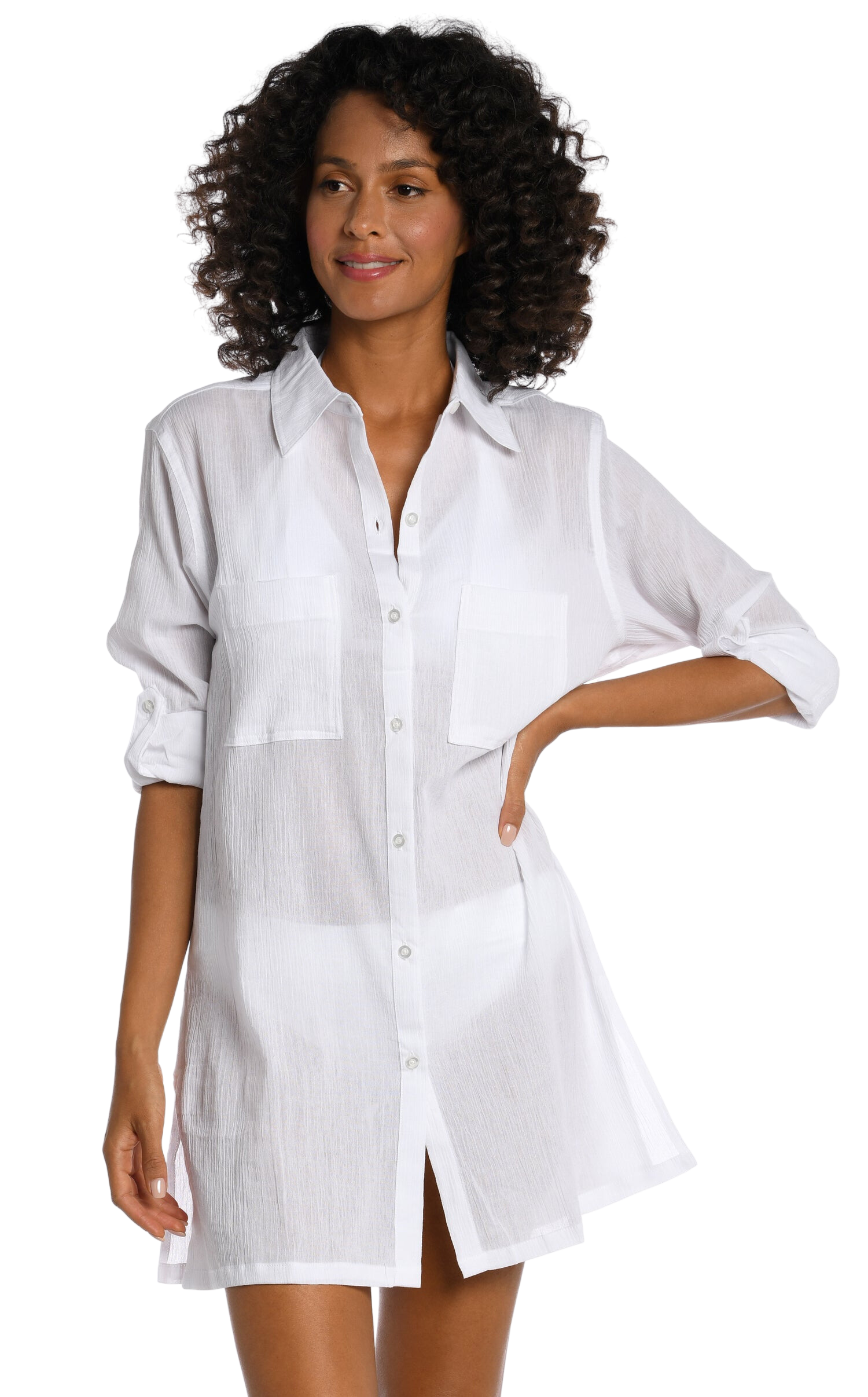 La Blanca Island Fare Resort Button Down Shirt Coverup - White - FINAL SALE