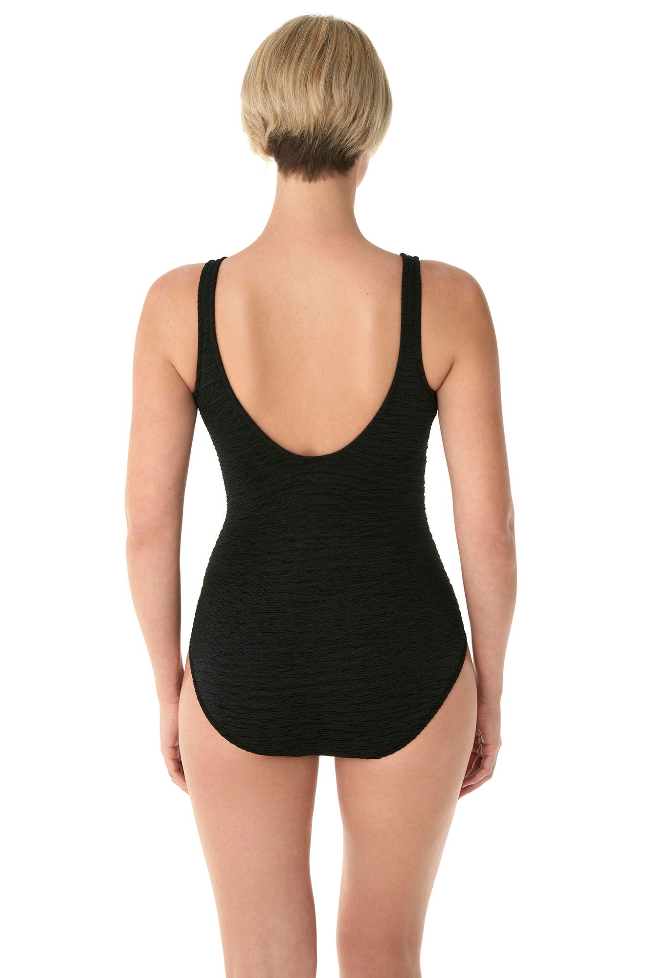 Penbrooke Krinkle Empire Mastectomy Chlorine Resistant One Piece Swimsuit - Black