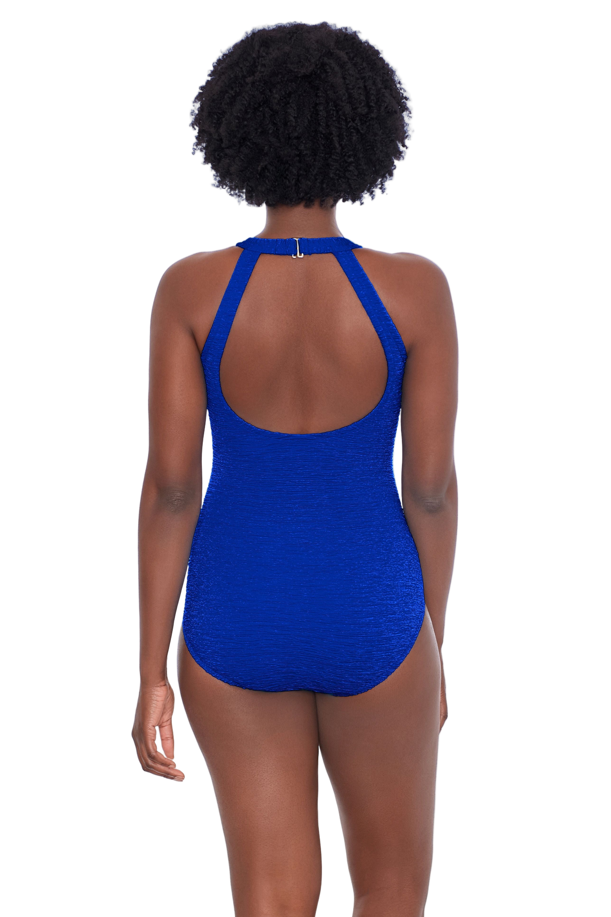 Penbrooke Krinkle Mastectomy High Neck Chlorine Resistant One Piece Swimsuit - Royal