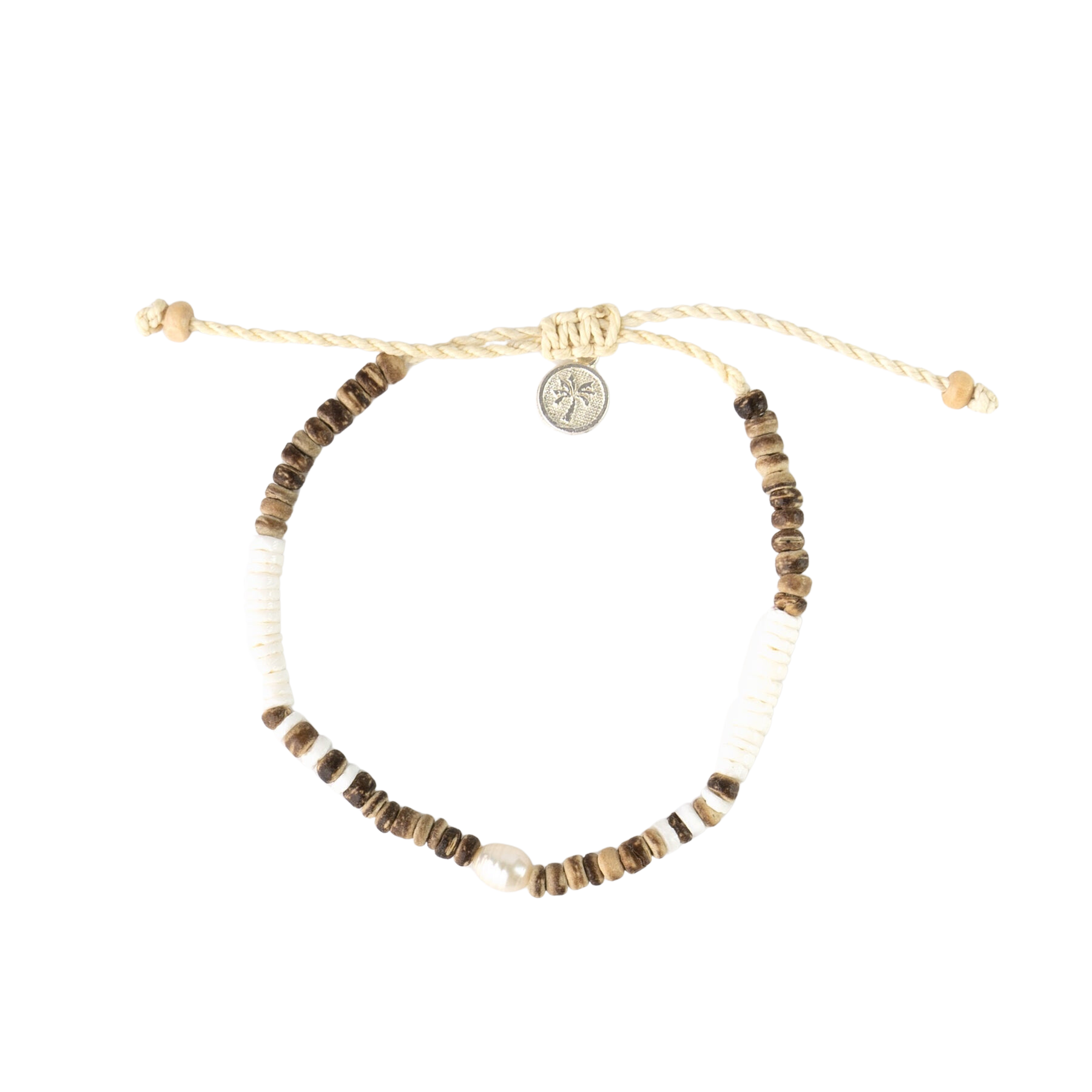 Pearls, shells and wood! The Kauai Puka Shell Bracelet has it all! Inspired by the contrasting rainforest and beaches of Kauai, also know as "The Garden Isle"! A fully adjustable bracelet that is perfect for stacking. OBX style bracelet!