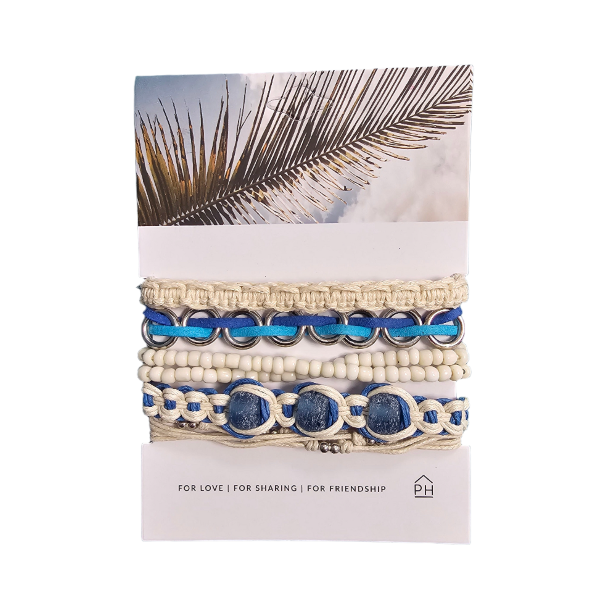 Transform your wrist with a touch of fun and color with the Pink House Palm Color Stack Pull Bracelets! This set of 5 handcrafted bracelets features a sliding knot clasp for easy adjustment and can be worn together or individually for various styles. Handmade in Bali, these bracelets are the perfect addition to your accessory collection.
