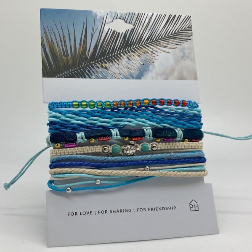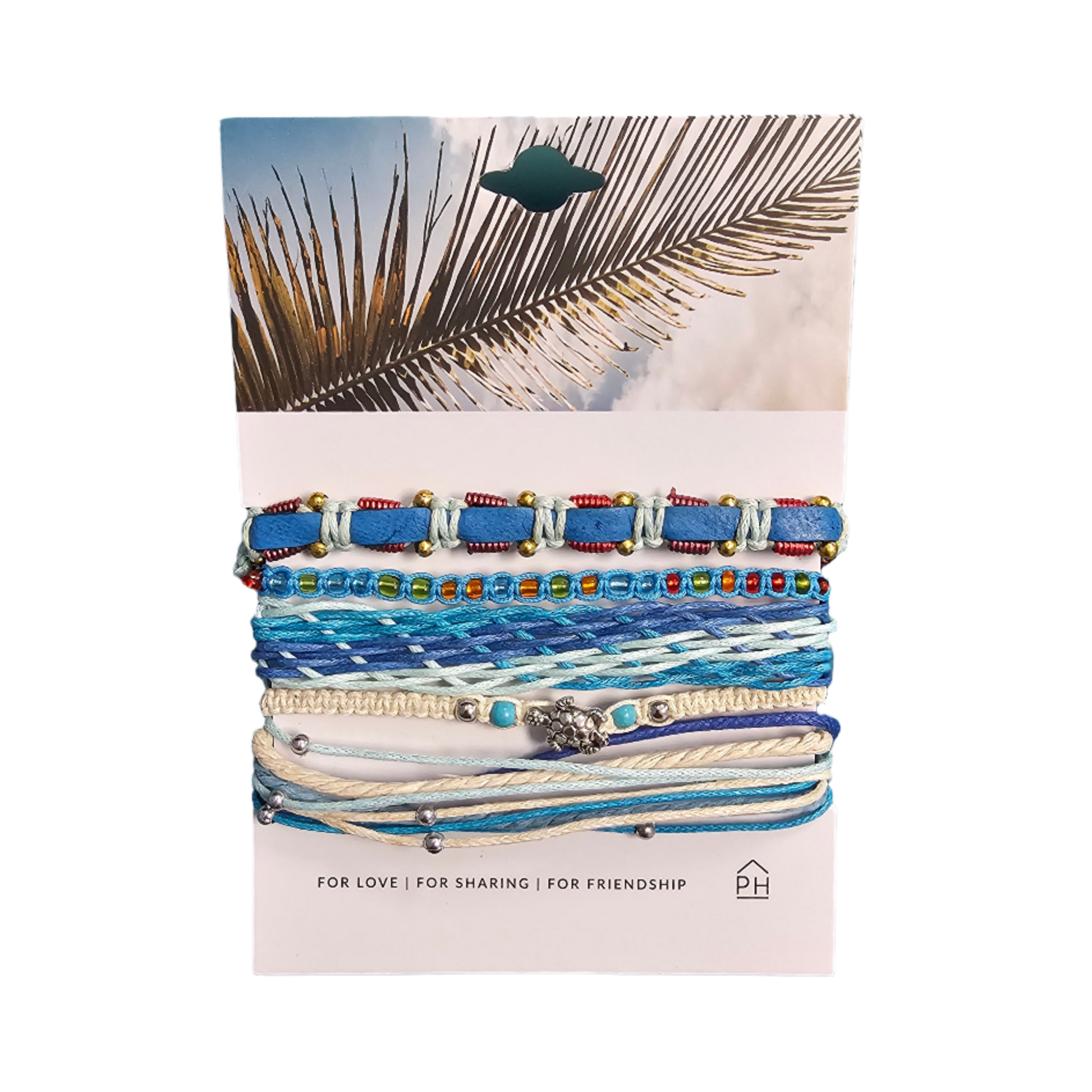 Transform your wrist with a touch of fun and color with the Pink House Palm Color Stack Pull Bracelets! This set of 5 handcrafted bracelets features a sliding knot clasp for easy adjustment and can be worn together or individually for various styles. Handmade in Bali, these bracelets are the perfect addition to your accessory collection.