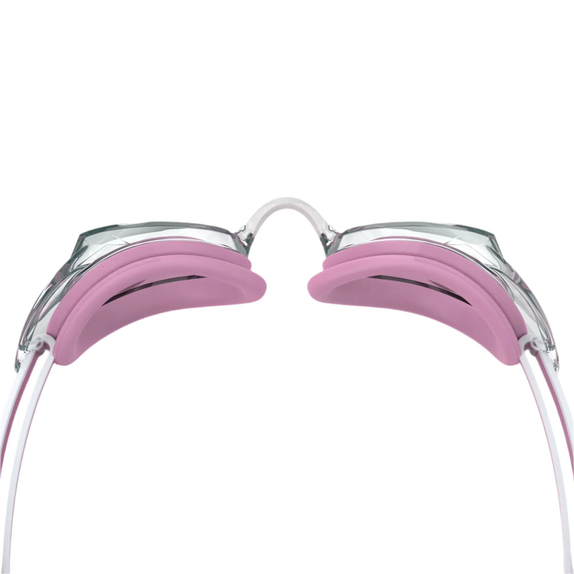 SPEEDO'S NO.1 TRAINING GOGGLE JUST GOT AN UPGRADE. Introducing a new, evolved Vanquisher 3.0 Goggle with a unique design for female swimmers. Next-level optics deliver a clearer path to the podium and a 12% gain in vision and brightness. Stronger, flatter and wider straps hold their position so you can focus on holding yours. With the same snug, race-day fit and comfortable gasket you love, it now includes slide-and-lock nose bridges for easy adjustment.