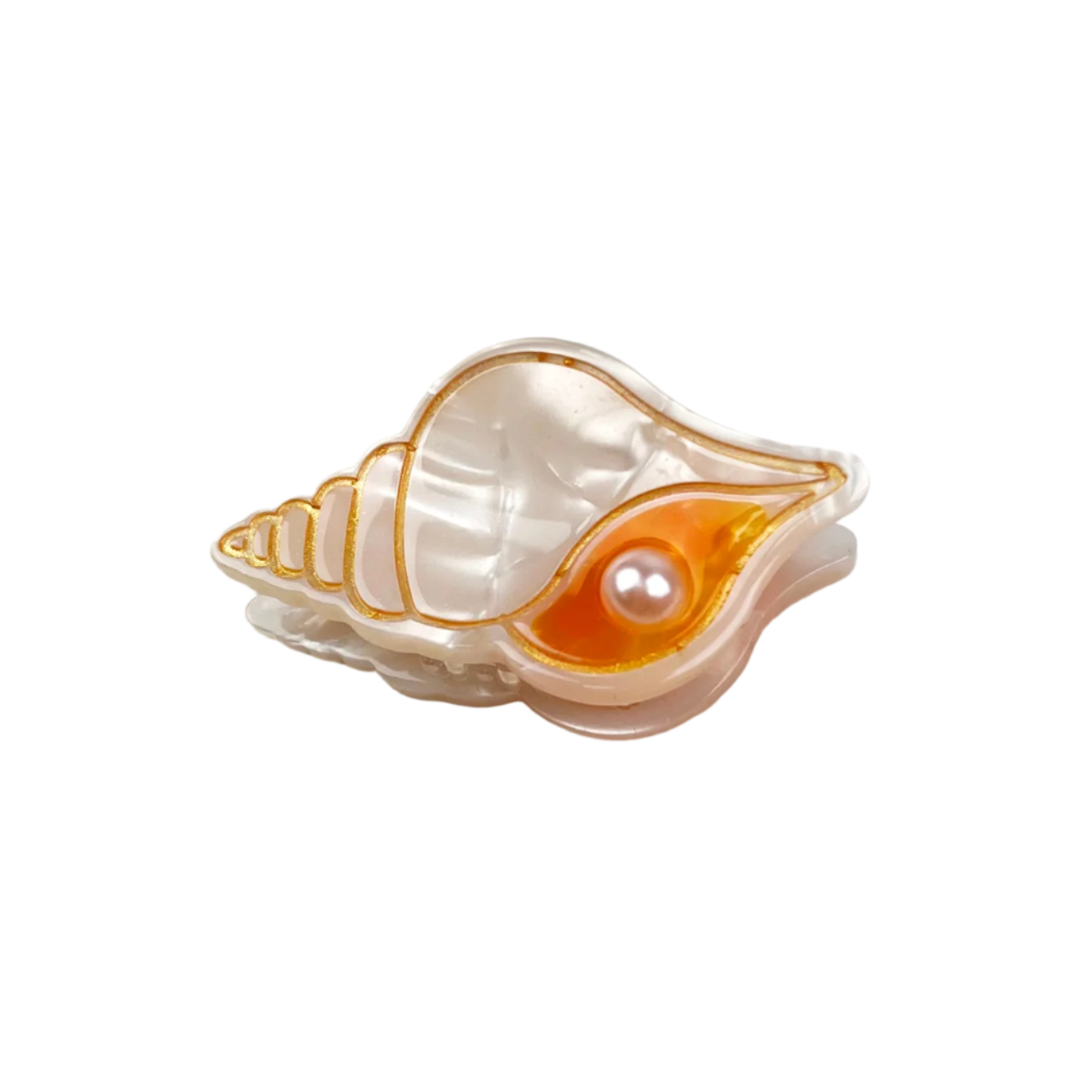 Accentuate your beachy vibes with our adorable Acetate Mini Conch Claw Clip. This cute little clip is perfect for adding a playful touch to any hairstyle while also giving you fond memories of the beach. Bring a bit of quirkiness and humor to your look with this fun accessory.