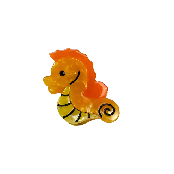 Add a playful touch to your beach-ready look with our Acetate Mini Seahorse Claw Clip. This little seahorse hair clip is perfect for keeping your hair in place while adding a fun, quirky element to your outfit. So go ahead and make a splash with this mini seahorse clip!