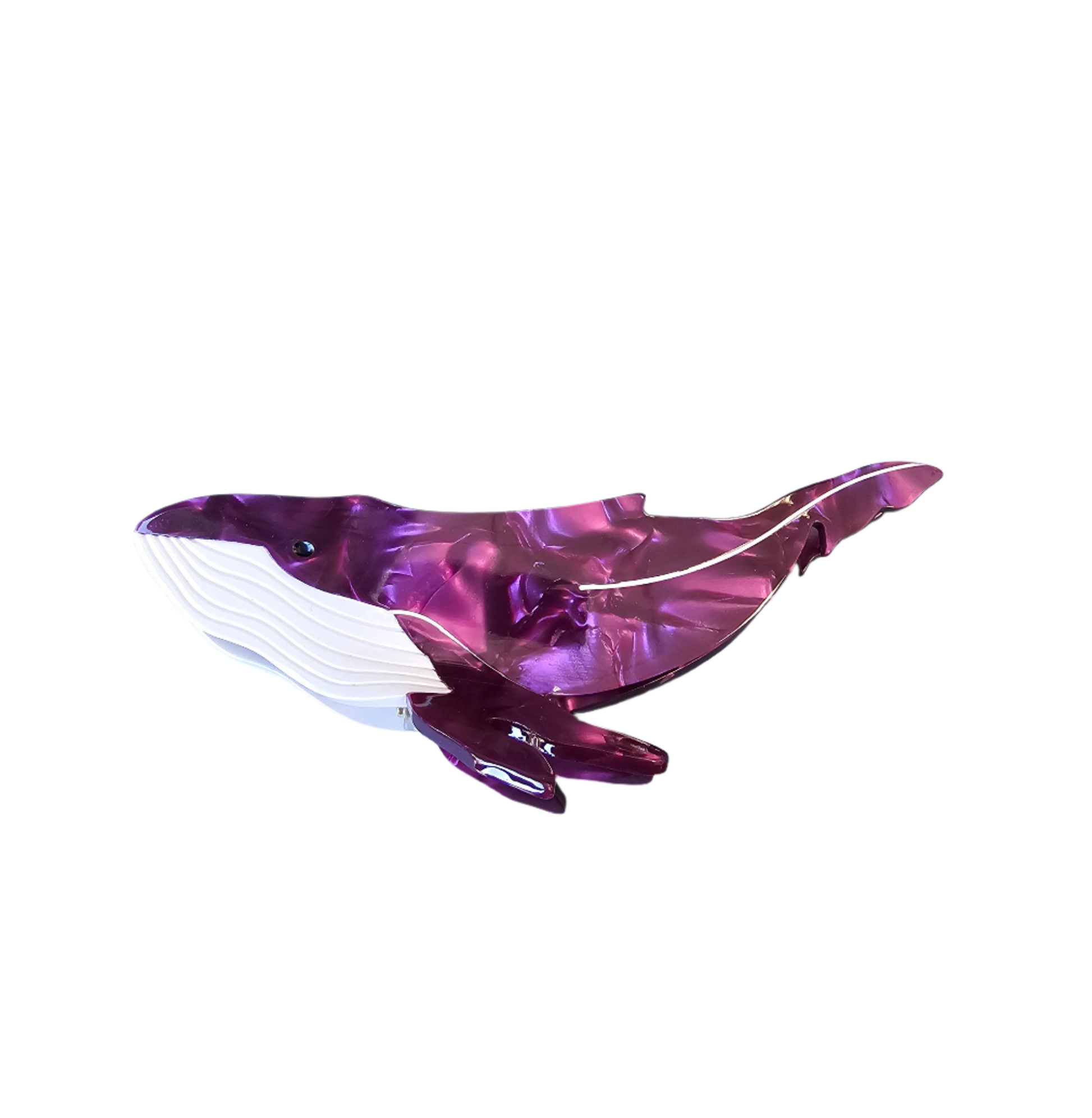 Capture the essence of the ocean with our Acetate Whale Hair Claw Clip. With its gorgeous pearlescent purple and white design, this clip not only keeps your hair secure, but also serves as a daily reminder of the majestic creatures we share our planet with. Dive into style and purpose with this unique hair accessory.
