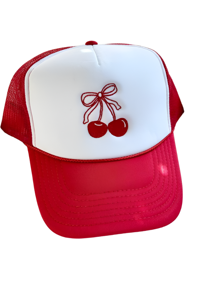 Foam trucker hat with mesh back, adjustable snap closure and embroidered design.