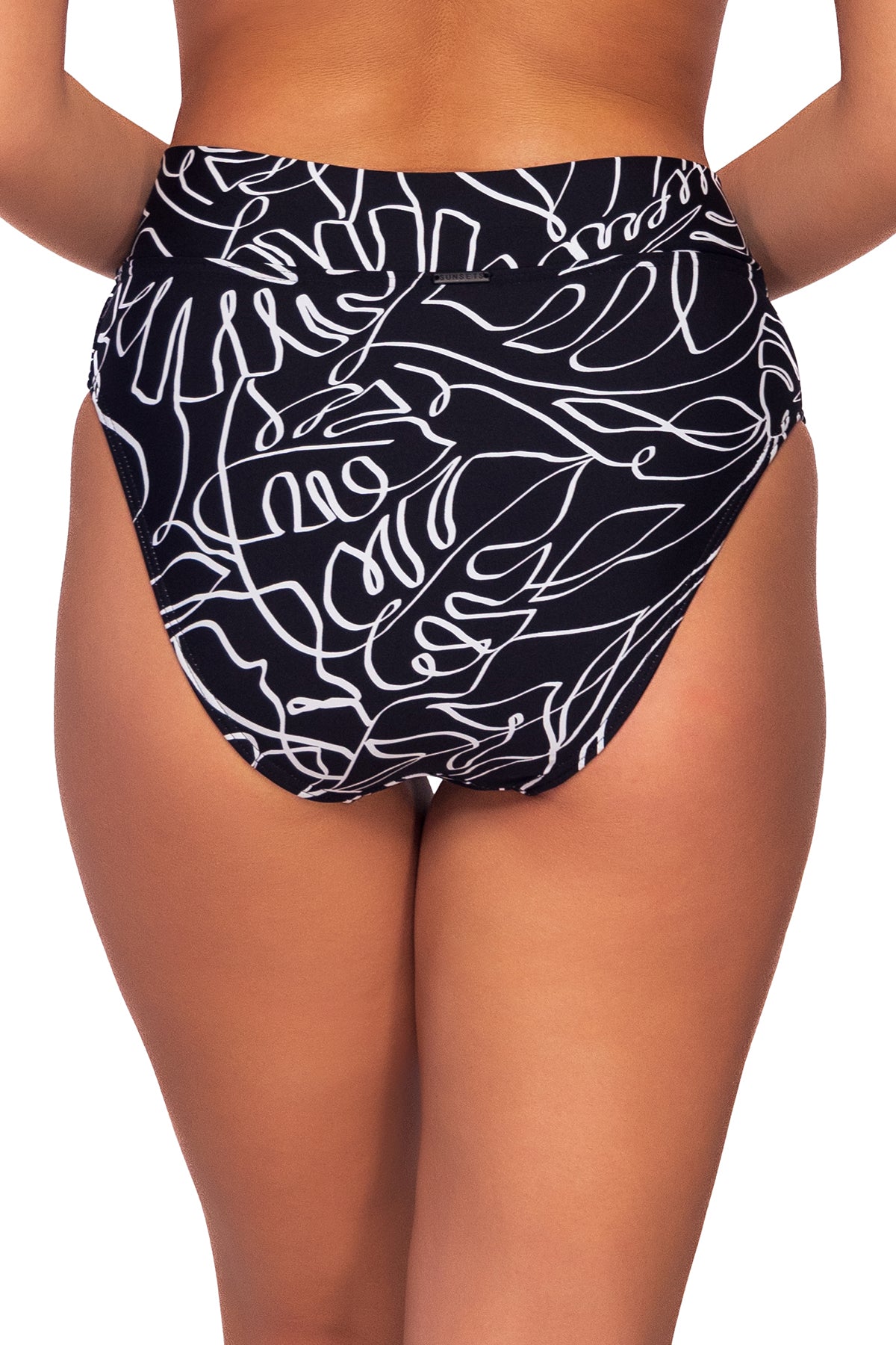 The Summer Lovin V-front detailing on this eye-catching bottom offers a great alternative to the basic high waist. A soft fold over band sits comfortably at your high hip and dips to a V at the center. Features include matching front and back colored lining.