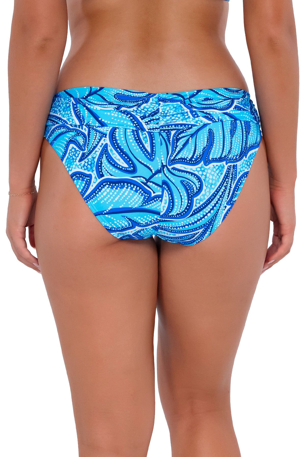 Add a little flair to your unforgettable bottom with our shirred waist hipster. Features include shirred band with cinched back detail and matching front and back colored lining. Sits straight across the hip.