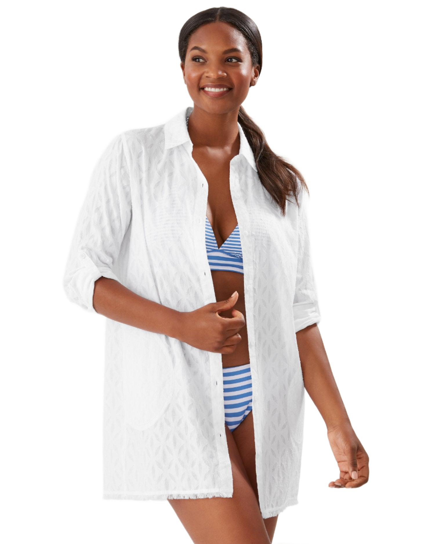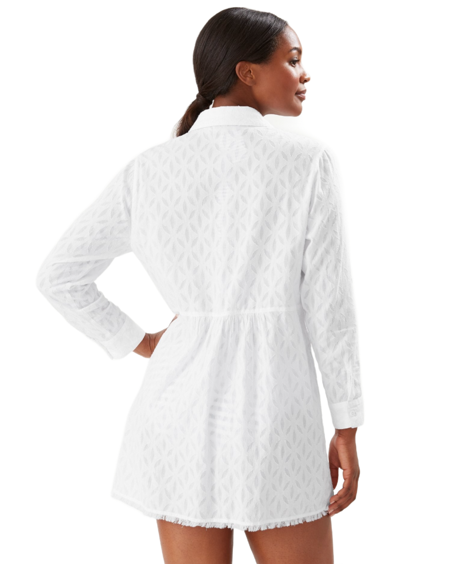 Tommy Bahama Cotton Clip Jacquard Boyfriend Shirt - White